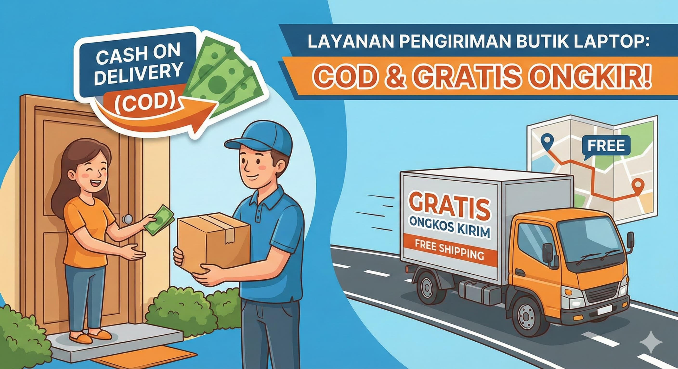 COD area Jakarta gratis, kirim via JNE seluruh Indonesia, atau kamu bisa datang ke Toko Butik Laptop untuk coba pilihan-pilihan laptopnya. Pilih yang nyaman buat kamu.